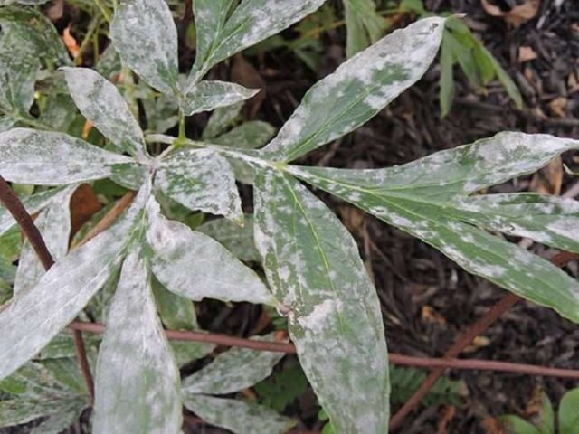 A lisztharmat fehér virágzása nagyon gyorsan átterjed a pünkösdi rózsa, 1-2 nap alatt lefedi a növény teljes lombozatát
