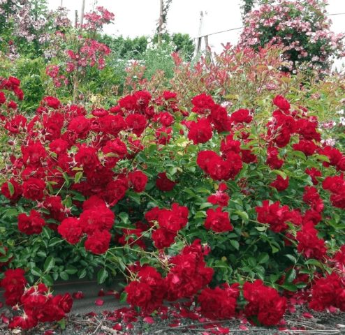Talajtakaró vörös Swanee rózsa nem igényel formázó metszést