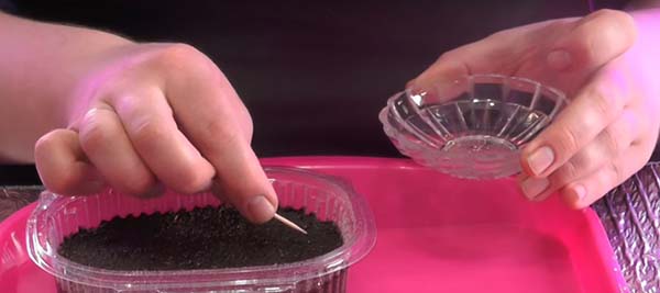 - vízben áztatott fogpiszkálóval felszedik a verbena magokat, és átviszik a föld felszínére;