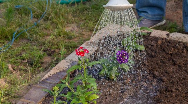 Mivel a hibrid verbena szárazságnak ellenálló növény, ajánlott 7 naponta egyszer öntözni. Különösen száraz időben - heti 2 alkalommal.