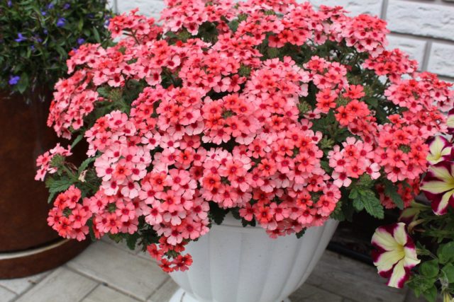 A hibrid verbena virágai, rügyei, levelei még a tűző nap alatt sem hervadnak el. A kultúra remekül mutat virágágyakban és ágyakban, valamint utcai cserepekben vagy virágcserepekben.