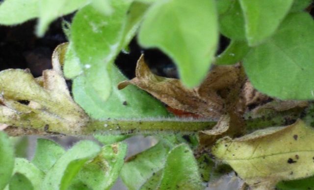 A szürke rothadás károsodása esetén sötétszürke foltok jelennek meg a leveleken, a virágzatok elrothadnak és lehullanak