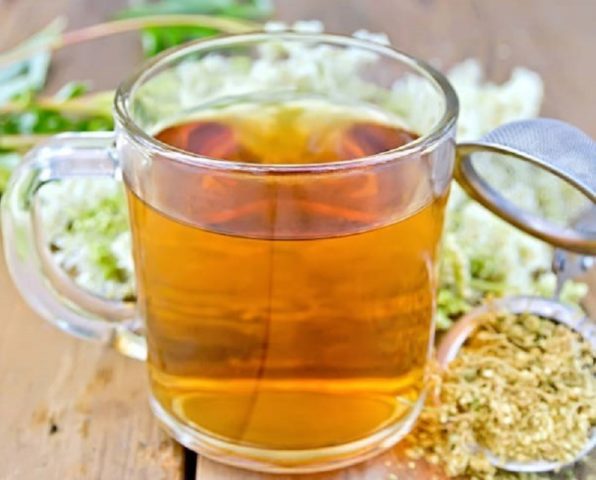 A teát az erigeron, az aranyvessző és a rémes mag gyűjteményéből készítik forrásban lévő vízzel átitatva.