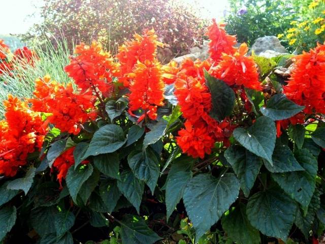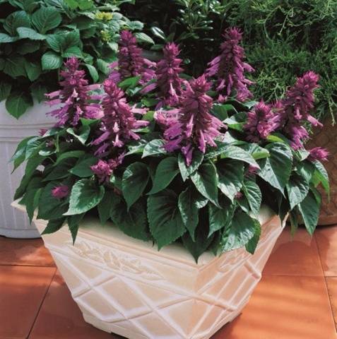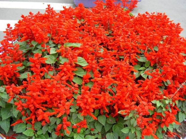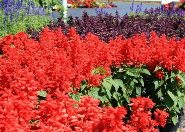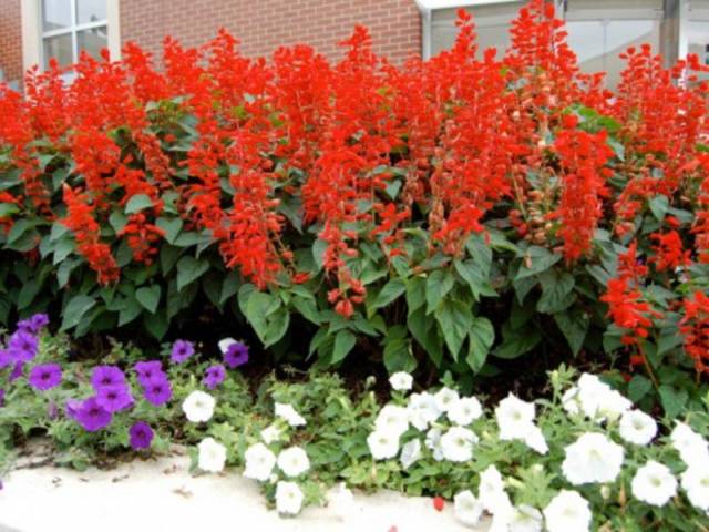 Az egyéves Salvia maximális magassága 60 cm, a bokrok tömörek, sűrűek, fényesek - nagyon gyakran díszítik az ünnepi virágágyásokat, virágágyásokat, szegélyeket vagy gerinceket.