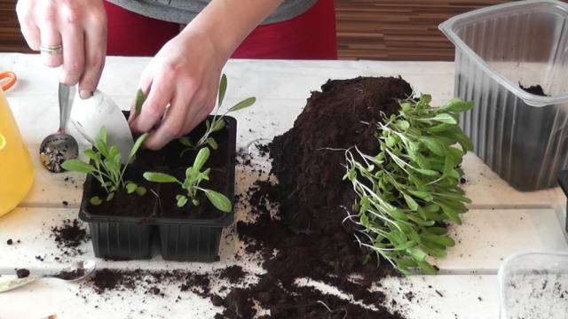 A Salvia ültetéséhez kis edényeket készítenek, amelyek aljára duzzasztott agyagot vagy más vízelvezető anyagot öntenek. A tetejére laza és tápláló talajt helyeznek, amelyet a legjobban egy virágboltban lehet megvásárolni. A talajt szobahőmérsékleten melegítik. Másnap a Salvia magokat vetik, és a talajt permetező palackkal permetezik.