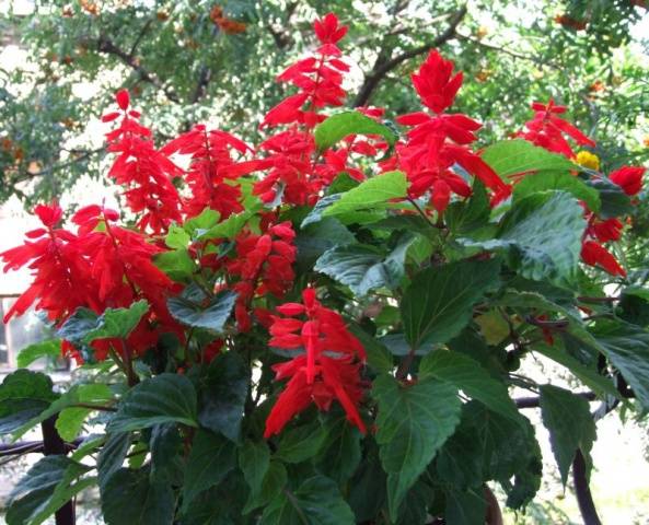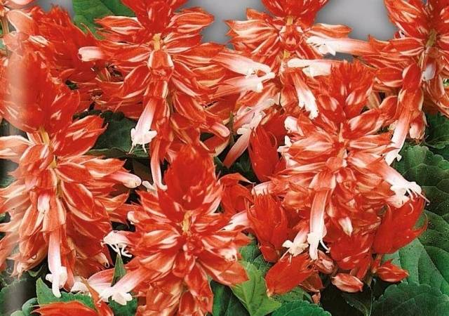 Ennek megfelelően a Salvia virágzattal ellátott tüskék hosszabbak. Az egész bokor jól leveles, sok nagy virág borítja. A központi hajtáson egyszerre mintegy száz tüzes szivacsos virágzat virágozhat.