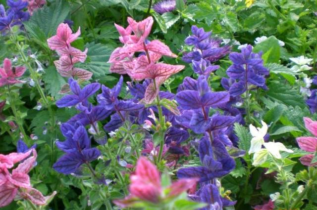Ma a Sparkling Salvia minden fajtáját általában két nagy csoportra osztják: magasra és rövidre.... Az első csoport a 70-80 cm magasságot elérő virágok, amelyekkel általában kerteket és virágágyásokat díszítenek. Az alacsony növekedésű zsálya kompakt növény, legfeljebb 50 cm-re nő. A határokat és a virágágyásokat ilyen virágokkal díszítik, cserepekbe és virágcserepekbe ültetik, a Salvia-t szőnyeg virágágyásokhoz és virágágyásokhoz is használják.