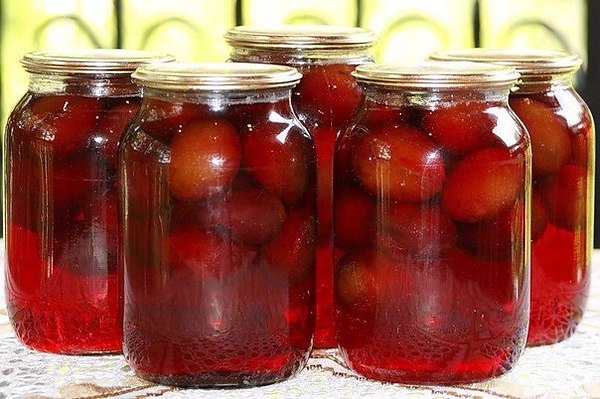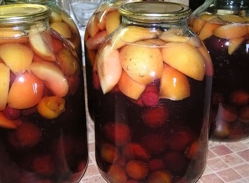 Bármilyen gyümölcsöt lehet venni. Ez a szilva infúziós recept kényelmes, mivel nem kell mérnie a növényi anyagok és a víz mennyiségét. Ízlés szerint cukrot is adnak hozzá. Töltse fel az előkészített üvegekbe gyümölcsöt 1/3, öntsön forró vizet a széléig, várjon 15 percet. A folyadékot kétszer leeresztjük, felforraljuk és visszahelyezzük. Utoljára a cukrot öntés előtt teszik be, majd szorosan lezárják, fejjel lefelé fordítják, meleg takaróval letakarják.