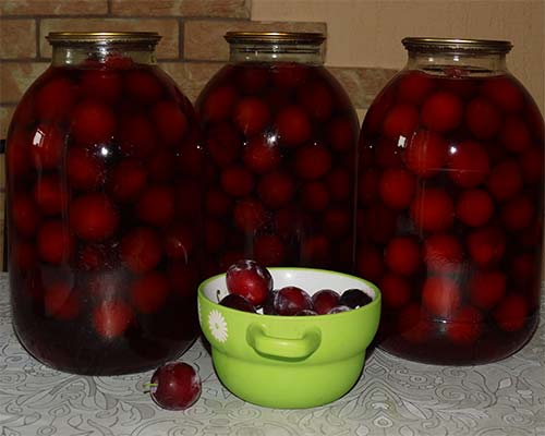 A szilvaital készítésének receptje cseresznye hozzáadásával a savanyú ételek szerelmeseinek tetszeni fog. Töltse ki az üvegtartály 1/3-át bogyókkal és gyümölcsökkel egyenlő arányban. Édesítsd ízlés szerint. Öntsünk forrásban lévő vizet, sterilizáljuk negyed órán át. Felteker.