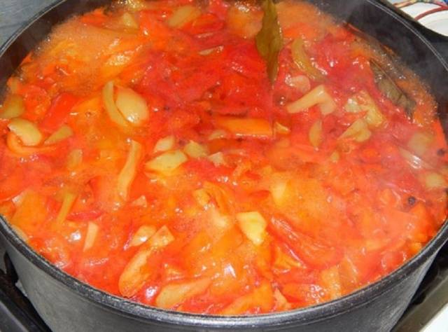 Ez az utolsó pont, amely időtartamával nem felel meg a modern háziasszonyoknak. Folyamatosan keresik az új lehetőségeket, hogy a finom lecho készítése kevésbé megterhelő legyen. A legalkalmasabb, amelyben az étel csodálatos íze megmarad, a paradicsompürével készült lecho receptjének számít, paradicsomlé vagy ketchup.