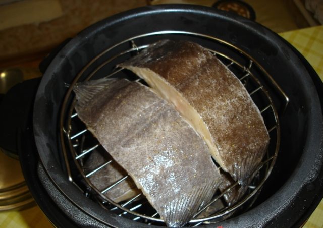 Az otthoni hideg füstölt laposhal receptje előírja a hal előzetes sózását. A következő összetevők szükségesek (1 kg-onként):