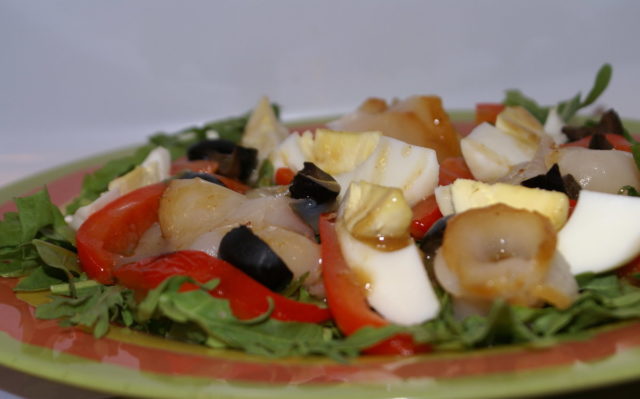 A hideg füstölt laposhal is kereslet a saláták összetevőjeként. Jó társak számára:
