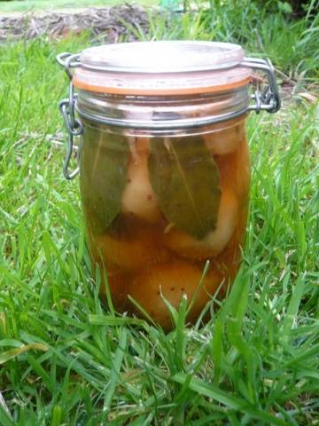 - Itt az ideje a sóoldatnak - óvatosan öntsük, ügyelve arra, hogy a folyadék teljesen ellepje a gyümölcsöket.
