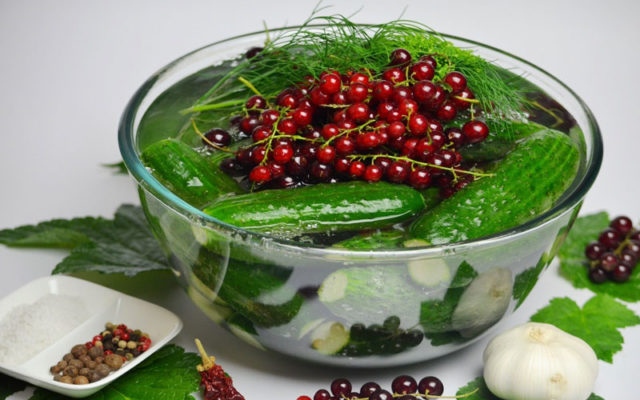A ribizli bogyókkal és levelekkel konzervált uborka télen történő elkészítéséhez elő kell készíteni: