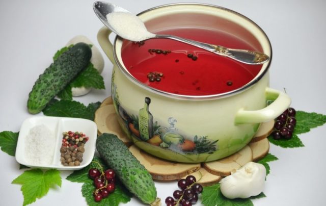 Azok számára, akik nem igazán bíznak a fent leírt konzerválási módszerben, főzhetünk uborkát vörös ribizlivel, ecet hozzáadásával. Általában egy 3 literes üveg uborka 3 evőkanál. l. ecet. De ebben a receptben figyelembe kell venni, hogy a sav a bogyókban található, így egy kicsit kevesebb ecetet vehet be, mint a normál. Az ecetet az edénybe öntik, és forralás előtt felforralják.