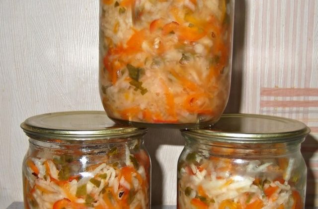 A recept szerint elkészített sokoldalú válogatott saláta vitaminokat és hasznos ásványi anyagokat biztosít az egész tél számára.