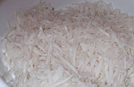 A legtöbb recept szerint a hámozott retket konzerválás előtt a kényelmes módszerek egyikével kell felaprítani: reszelőre reszelni, késsel kockákra vagy szívószálakra vágni vagy zöldségvágón átengedni.
