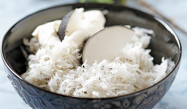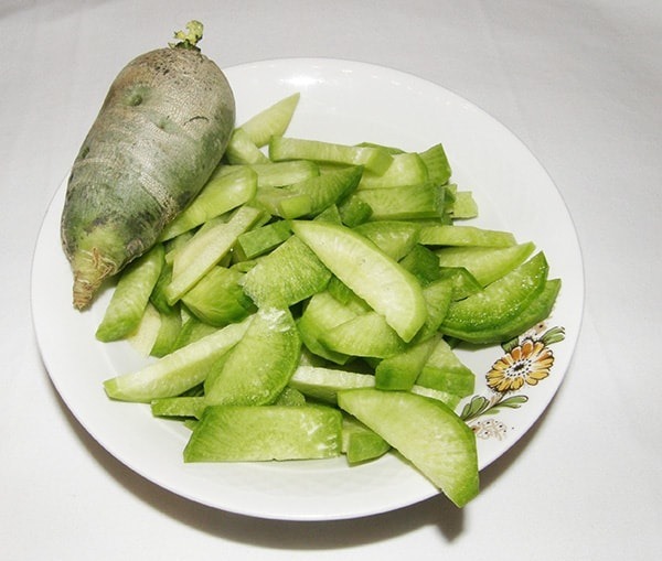 - A káposztát éles késsel apróra vágjuk, a retket reszeljük vagy vékony szeletekre vágjuk.
