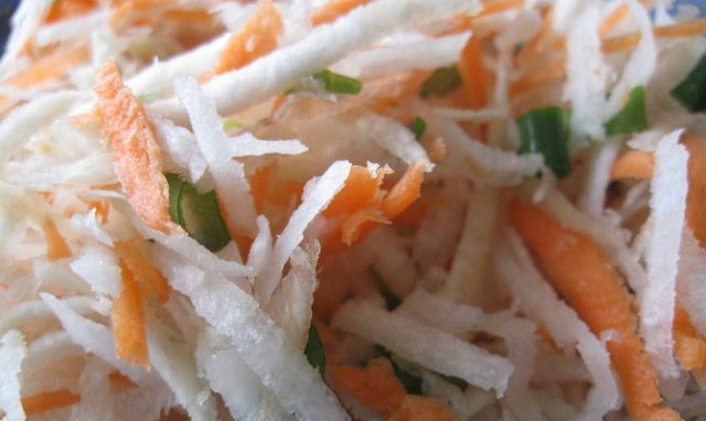 A sós retek nemcsak önmagában ízletes, de télen nagyon ízletes salátákat készítenek belőle.