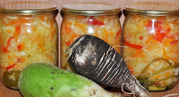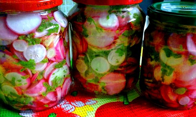 A gyökérzöldségeket télen különféle módon tartósíthatja, és minden háziasszony kedve szerint módosíthatja ezt vagy azt a receptet. Sokan hagyományosan a zöldségek pácolását részesítik előnyben, mint a leggyorsabb és legkevésbé költséges konzervipari módszert. Ezenkívül a feltekert, ecetes retekből készült üvegek normál szobai körülmények között tárolhatók.