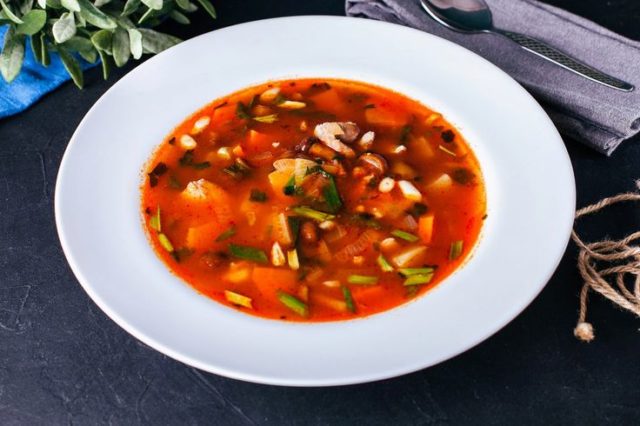 Ha nincs marhahúsleves, akkor egyszerűen vízben vagy csirkében főzhet, halleves. Célszerű kiválasztott gabonaféléket venni, hogy megtartsa formáját, ne savanyuljon nagy mennyiségű folyadékban.