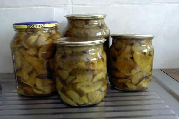 - Amikor a gyümölcsök teljesen össze vannak tömörítve, és leállnak a leülepedéssel, küldje el őket az alagsorba másfél hónapra. A gyümölcslé teljesen leereszthető, és helyette öntsön sült növényi olajat.