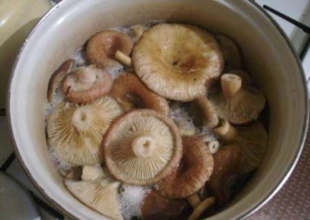 - Hámozza meg a gombát. Vágja le a lábakat. Áztasson egy napot, ne felejtse el kicserélni a folyadékot. Forraljuk 20 percig. Távolítsa el az összes képződött habot, majd öblítse le a gombákat és szűrje le.