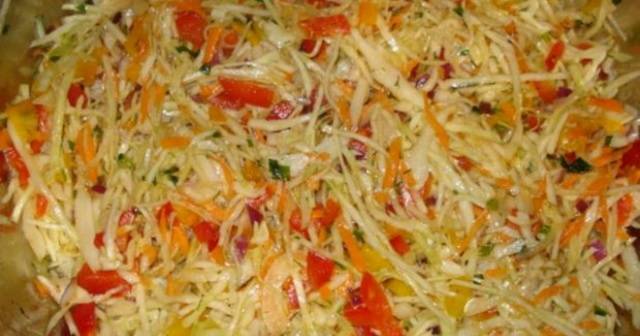 Az összes zöldséget jól összekeverjük és szorosan üvegedénybe tesszük. Miután a pác eléggé felforrt, gondosan beleöntjük ebbe az üvegbe egészen a nyakáig. Az üveg befedhető fedéllel, de nem szorosan és lehűlni. A nap végén a káposzta betakarítása használatra kész.