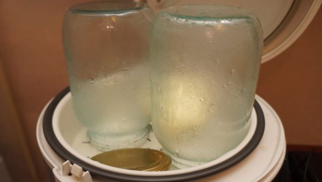 - Állítsa sterilizálásra 20 percig, öntsön bele ecetet a befejezés előtt.