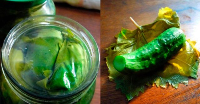 A tormaleveles savanyított uborka receptjét háromliteres tégelyhez tervezték. A zöldségeket rövid ideig veszik, mindegyiket levélbe csomagolják. Telepítse függőlegesen. A pác megy: