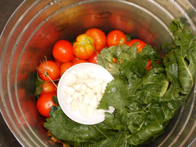 - A megmosott zöldségeket egy fazékba helyezzük, fűszerekkel, gyógynövényekkel és hámozott fokhagymával együtt.