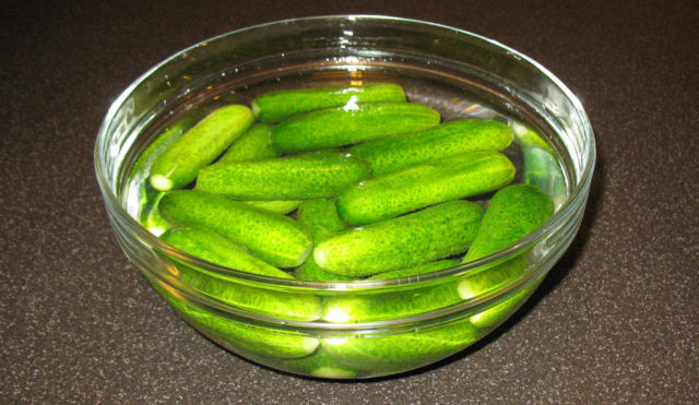Az uborka áztatása a pácolás előtt a legtöbb konzerv receptben általános. Ez úgy történik, hogy a gyümölcsök hosszú ideig tartó állva is szilárdak, szilárdak és ropogósak maradjanak. Az áztatás idején a zöldségek telítettek vízzel, és olyan látszatot keltenek, mintha csak eltávolították volna a bokorról.