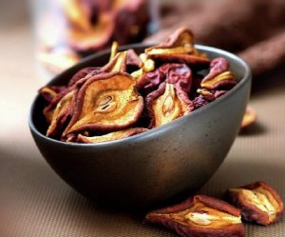 Kényelmes és gyors módszer a körte szárítására. Az így elkészített szárított gyümölcsöknek kiváló aromájuk és ízük van, azonban az elkészítési folyamat során elveszítik a tápanyagok egy részét.