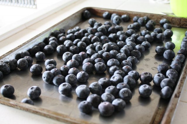 - Kenje meg az áfonyát vékony rétegben a sütő serpenyőjén, vagy 2 rétegben.