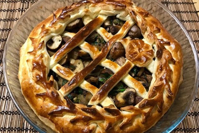 Házi pite, sampinyonval díszíti nemcsak a vacsorát, hanem az ünnepi asztalt is. A receptek széles választéka lehetővé teszi, hogy minden nap finom péksüteményeket készítsenek sokféle tésztából és adalékanyagból.