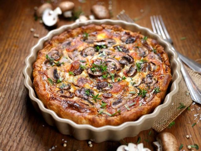 A gombás és sajtos zselés pite illatos étel, amely az egész családnak örülni fog.