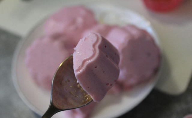 - A folyékony szuflát elosztjuk a formákban, és a hűtőszekrényben 3-4 órán át megszilárdulva eltávolítjuk.