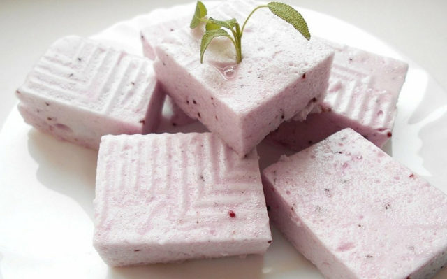 - A kihűlt tojásfehérjét habosra keverjük, és a textúra megzavarása nélkül óvatosan keverjük bele a ribizli finomságot.
