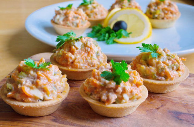 Adott mennyiségű pástétomhoz 1 csomag tartlet szükséges. Töltheti őket cukrászsák és fúvóka segítségével. Ezután díszítse friss fűszernövényekkel és olajbogyóval, majd tartsa a hűtőszekrényben történő tálalás előtt körülbelül 30 percig.