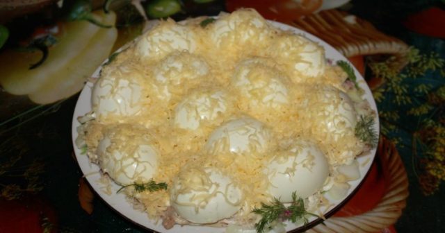 A "Snowdrift" saláta némileg emlékeztet a sokak által imádott töltött tojásokra. Ez nem meglepő, mert ők imitálják a hófödte dombokat.
