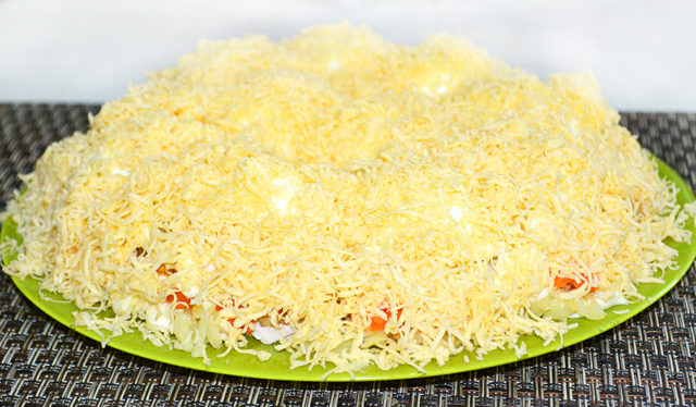 - Reszeljük le a sajtot, szórjuk rá a "Snowdrift" salátára.