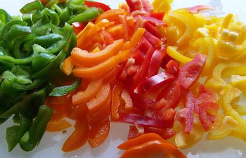 Az apróra vágott fagyasztott paprikából főzhető zöldségpörkölt, saláta stb. Ebben az esetben a zöldséget kockákra vagy hosszúkás szeletekre vágják, és konténerekbe, zacskókba fektetik, majd lefagyasztják.