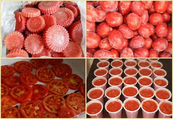 Bármely évszakban a paradicsom üdvözlő alapanyag az asztalon. Széles körben használják első és második fogás, szószok, saláták készítéséhez. A zöldséget egészben, szeletekben vagy burgonyapüré formájában lefagyaszthatja. Csak a kis paradicsom fagyott meg teljesen, a nagy gyümölcsöket szeletekre kell vágni, és egy tepsibe kell teríteni. Fagyasztás után a szeleteket lezárt műanyag zacskóba hajtják.