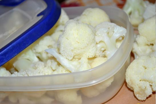 - A karfiol általában kifehéredett. A kiválasztott virágzatokat 3 percig forrásban lévő vízbe mártjuk citromlé hozzáadásával. A blansírozott karfioldarabokat papírtörlővel megszárítjuk, majd műanyag zacskókba fektetjük és a fagyasztóba tesszük.