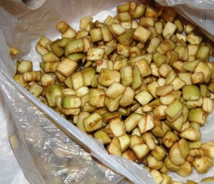 Előtte as fagyassza be a padlizsánt, 5-10 percig kell blansírozni, szárítani és kockákra vagy ékekre vágni.