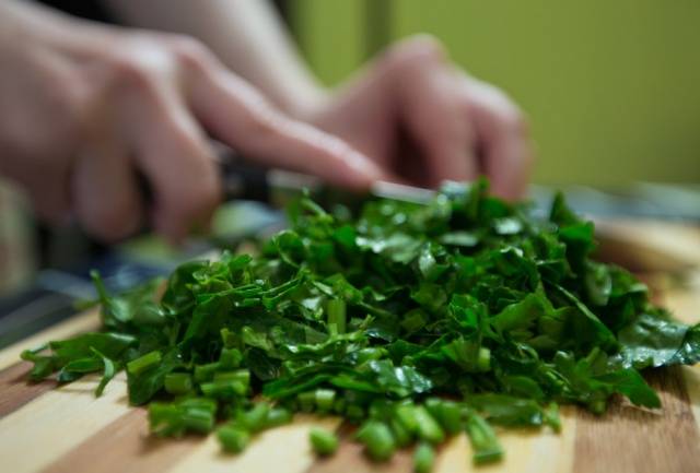 - Ezután elő kell készíteni a zöldeket: alaposan mossuk meg és szárítsuk meg.