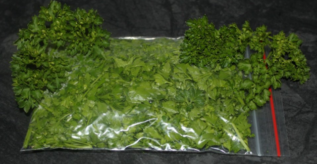 Ha úgy dönt, hogy a petrezselymet zacskóban tartja, nagyon fontos, hogy különös figyelmet fordítson a zöldek szárítására. Ha van víz a leveleken, akkor a zöldek egy darabban összetapadnak a fagyasztóban. Ezt követően vagy hasítani, vagy vágni kell, ami nem túl kényelmes.