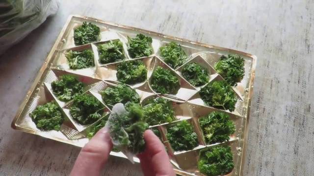 A fagyasztott zöldek megőrzik ízüket, míg a sózott zöldek elveszítik. Fagyaszthatja a petrezselymet: