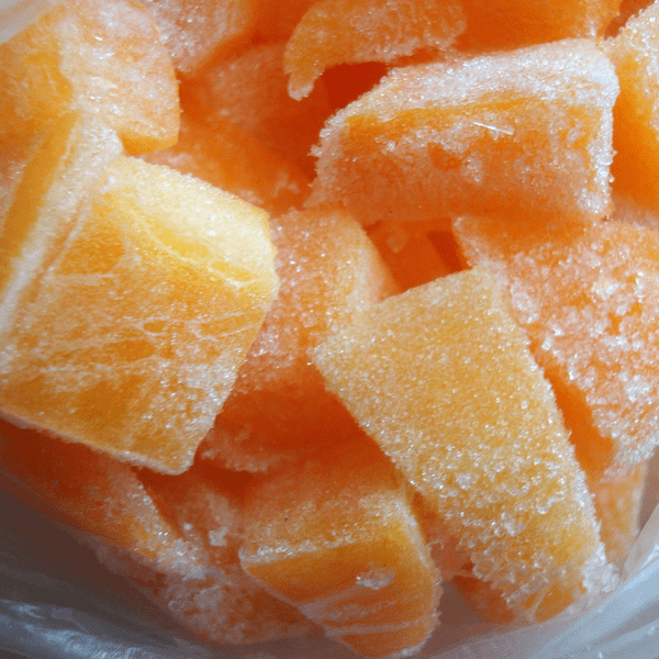 Kiolvasztás után az ilyen kockákra vágott tököt szükségszerűen fel kell főzni vagy meg kell párolni a későbbi aprítással, így az állaga, alakja és mérete nem számít sokat.
