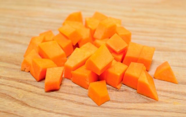 - Hűtsük le, különítsük el a pépet a sütőtöktől és a cukkinitől, majd miután hozzávetőlegesen ugyanolyan arányban keverjük őket a sárgarépával, burgonyapürébe keverjük össze turmixgéppel.